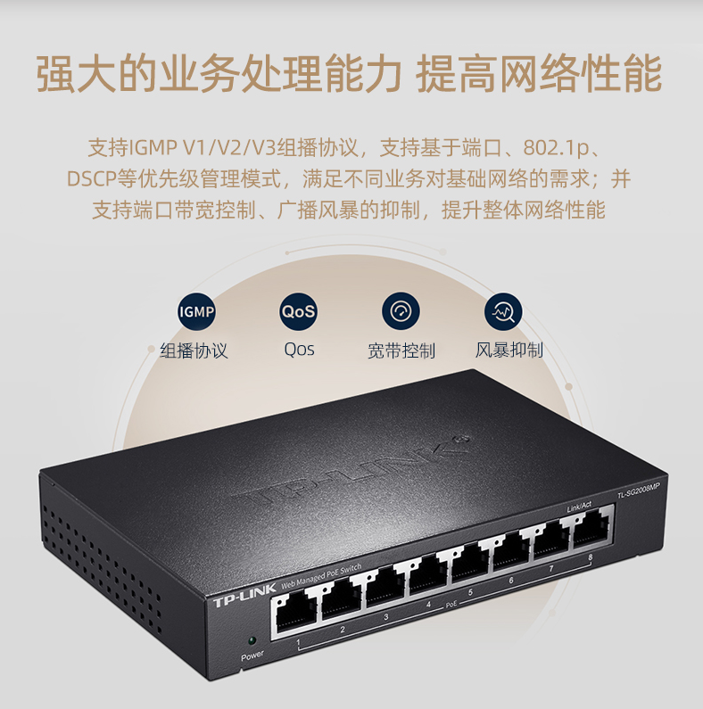 以太網(wǎng)交換機普聯(lián)/TP-LINK全千兆Web網(wǎng)管PoE以太網(wǎng)云管理交換機5口千兆TL-SG2005P/臺