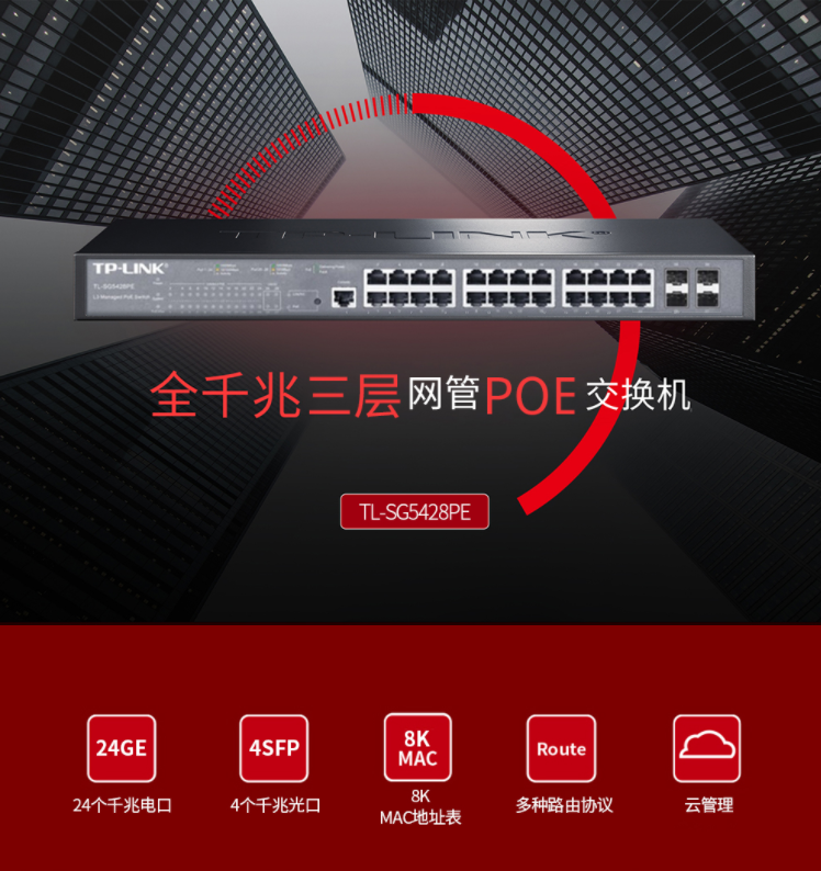 以太網(wǎng)交換機(jī)普聯(lián)/TP-LINK24口全千兆4個(gè)SFP光纖口企業(yè)網(wǎng)絡(luò)匯聚三層網(wǎng)管POE交換機(jī)TL-SG5428PE/臺(tái)