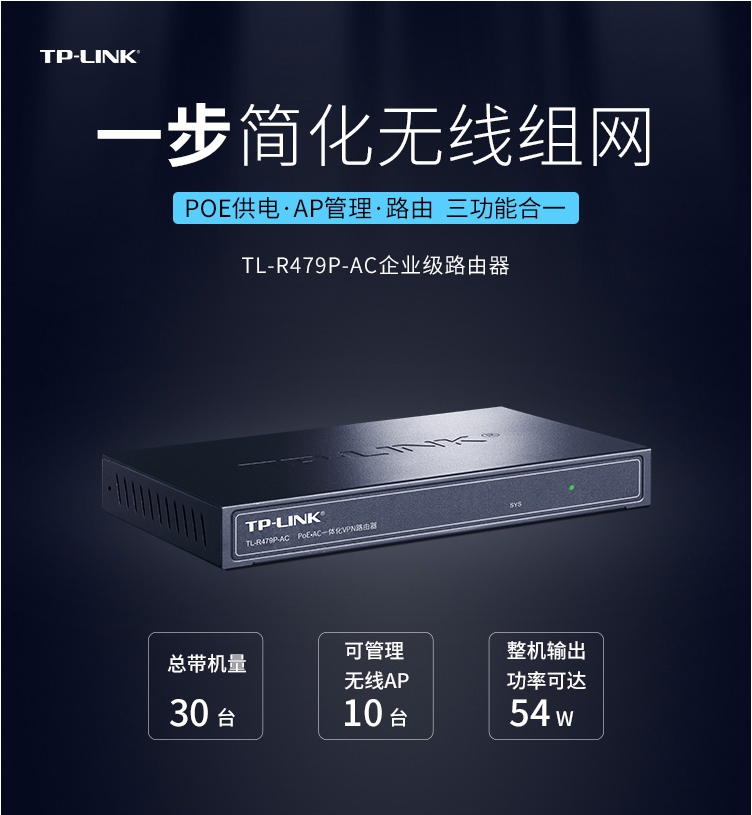 路由器普聯(lián)/TP-LINK企業(yè)級(jí)VPN路由器 8口PoE供電/AP管理 PoE供電TL-R479P-AC/臺(tái)