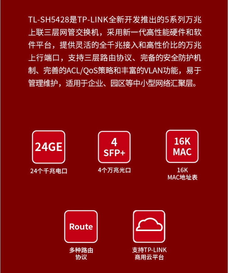 以太網(wǎng)交換機(jī)普聯(lián)/TP-LINK24口千兆+4萬(wàn)兆上聯(lián)光口 企業(yè)級(jí)交換機(jī)TL-SH5428/臺(tái)