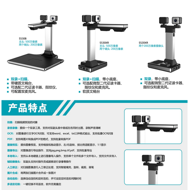 掃描儀良田/eloam高拍儀三攝像頭500萬像素掃描儀 影音雙錄S530B/臺