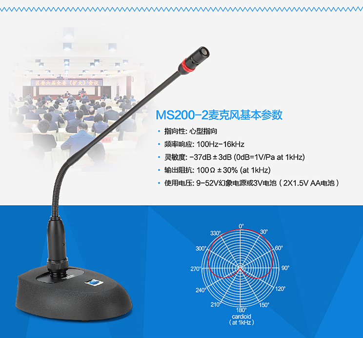 得勝/TAKSTAR鵝頸式麥克風(fēng)專業(yè)演講會議話筒MS200-2/臺